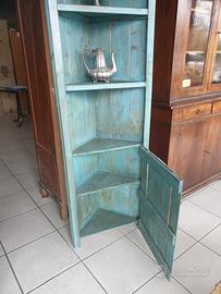 Piccola libreria angolare in legno povero massello, stile shabby, verde