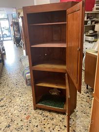 Angoliera in legno anni 60. Doppie ante e 3 ripiani. Ingombro 60 x 60 90 in diagonale. H : 180 Visibile presso la nostra bottega in via Zara, 22 a Trento