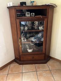 Angoliera in legno massello con vetrina robusta vendo per cambio casa H cm138,5 Profondità cm 68