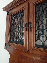 Angoliera arte povera di pregio, castagno massello lucido. Base a 2 ante e cassetto con ripiano interno, parte superiore ripiano e 2 ante vetrate. con ripiano interno. Altezza 215 cm, larghezza 100 cm, profondità 45 cm (ripiano profondità 30 cm) Fabbricazione artigianale toscana, castagno naturale lucido. Prezzo 500,00 euro Si trova a Bagno a Ripoli. Ritiro a carico dell'acquirente. NOTA: se acquistato insieme alla credenza e al buffet delle ultime foto (v. annunci 'credenza legno massello castagno' e 'controbuffet castagno massello) il prezzo è di 300,00 euro, ossia credenza + controbuffet + angoliera insieme prezzo totale 1500,00 euro, trattabili.