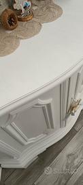 Vendo Angoliera shabby chic, oginale legno di mogano marrone, trattata per prevenire tarme e dipinta a pennello e rullo (bianco opaco). Pezzo superiore alto 143, Pezzo inferiore 80 ( complessivo alto 2.23) dividibili per il trasporto. Lati lunghi circa 67 cm. No spedizione.
