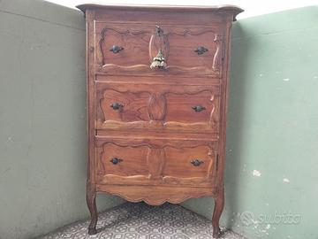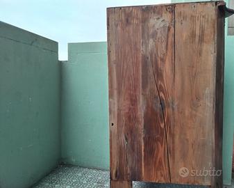 è COMPELTAMENTE IN LEGNO MASSICCIO , ANCHE SCHIENALE E LE MENSOLE SONO IN LEGNO MASSICCIO . POMELLI E SERRATURA SONO IN BRONZO PATINATO ; CHIUSURA è ORIGINALE ED ED è PERFETTAMENTE FUNZIONANTE CON CHIAVE ( NAPPINA NON INCLUSA ).