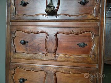 REALIZZATA IN LEGNO DURO ( QUINDI SENZA TARLI ) PREGIATISSIMO , MASSICCIO DI NOCE P A T I N A T O , è DI OTTIMA FATTURA E SOPRATUTO DI GRANDE VALORE , POICHé LEGNO DI NOCE TANTO ANTICO BATTE VALORE ANCHE QUELLO DI QUERCIA BIANCA .