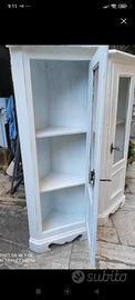 angoliera con vetrina, bianca, adatta per qualsiasi ambiente viste le modeste dimensioni, alta 117 cm e profonda 35 cm.