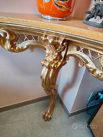 angoliera dorata antica con marmo. oro è stato restaurato