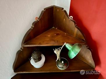 Bellissimo mobile ad angolo artigianale in legno massiccio completa di alzatina in legno gia fornita di ganci per essere appesa in sicurezza