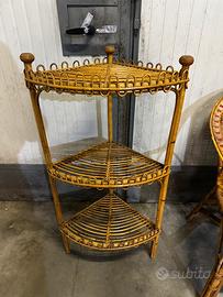 Questa è un angoloera vintage in bambù e vimini, probabilmente risalente agli anni '50 o '60.