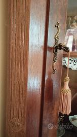 Angoliera in legno, arte povera, con anta superiore in vetro e 1 ripiano, e anta inferiore con sportello in legno e 1 ripiano. Le condizioni sono ottime, ma probabilmente necessita di trattamento antitarlo. No spedizione, si trova al piano terra.