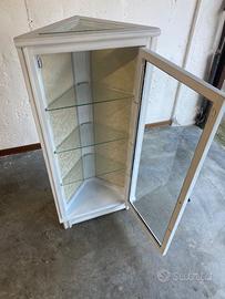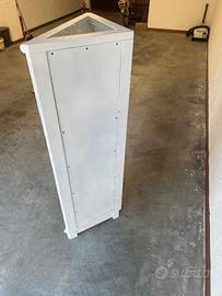 Angoliera in legno laccato bianco con mensole interne in vetro e sportello in vetro misura altezza 1,10 larghezza 50 profondità 28