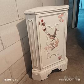 angoliera vintage in legno , decorata shabby chic . Buono stato . Da sostituire chiave perche spezzata . largo 60, altezza 96 , profondità 43