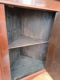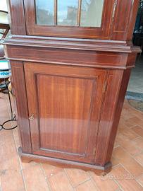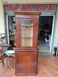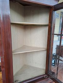 angoliera in mogano filettata primi 900 base con anta chiusa e ripiano parte alta a vetrina con tappezzeria interna misura 56x56 altezza 200cm....M&P Antichità siamo un negozio specializzato in antiquariato vintage e shabby vendita al dettaglio e all ingrosso scarichi settimanali oltre 500 articoli in negozio, abbiamo una vasta scelta di como comodini tolette armadi letti vetrine vetrinette credenze servanti angoliere librerie tavoli tavolinetti sedie poltrone poltroncine divani lampade lampadari tappeti scrivanie scrittoi secretere ribaltine consolle quadri cornici specchi cassapanche bauli oggettistica varia idee regalo e molto altro ci troviamo a Roma zona Castelverde via Massa San giuliano 26b POSSIBILITÀ DI CONSEGNA E SPEDIZIONE IN TUTTA ITALIA