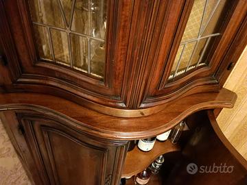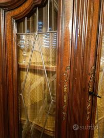 angoliera in noce massello in stile con vetri a piombo lato cm.70 profondità altezza circa cm 200