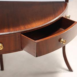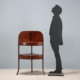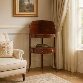 Piccola etagere d'angolo in stile regency realizzata agli inizi del '900. Tre leggeri montanti a sciabola sono raccordati da due ripiani uno con cassettino, mensola superiore con vani per appoggiare ceramiche da toilette. In mogano con pomoli in ottone. Codice: ANMOST0298433 Condizione prodotto: Mobile che a causa dell'et e dell'usura richiede interventi di restauro e ripresa della lucidatura. Cerchiamo di presentare lo stato reale del mobile nel modo pi completo possibile con le foto. Qualora alcuni particolari non risultassero chiari dalle foto, fa fede quanto riportato nella descrizione. Misure: Largh.:65.00 cm, Alt.:112.00 cm, Prof.:46.00 cm DISPONIBILE RITIRO, PREVIO SALDO, SU APPUNTAMENTO PRESSO LA SEDE DI MILANO! Venditore: Barbara (dal Luned al Venerd : dalle 9:00 alle 19:00, Sabato: dalle 10.00 alle 19.00) Per informazioni dettagliate contattateci su Whatsapp. Disponibili ad inviare video o foto integrative su Whatsapp. Di Mano in Mano, Negozio dell'usato di Milano, viale Espinasse, 99 (Zona Certosa). Oltre 1000 mq di esposizione, tra usato, vintage, modernariato, antiquariato, arte e libri. Esplora il nostro portale mercatiniusato.org per scoprire centinaia di arredi usati.