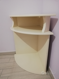 Angoliera in legno color panna. Usata come porta tv/porta oggetti. Ottime condizioni. Misure 60x60 altezza 87