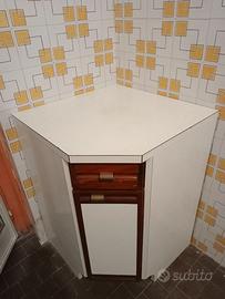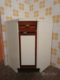 Set da due pezzi. - Parte superiore: H 58 , Lati a muro cm 63 . Laterali cm 31,5 . Frontale cm 44,5 - Parte inferiore: H 88 , Lati a muro cm 63 , Laterali cm 47 , Frontale cm 23.