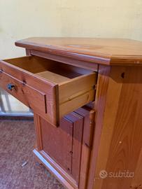 Angoliera porta tv con cassetto e anta, in pino massello, qualche segno usura, tutto sommato tenuto bene. Ritiro a carico dell’acquirente. Possibilità a pagamento consegna.
