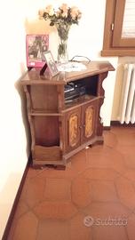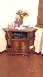 angoliera porta TV in legno massello con intarsi. lavorazione artigianale.