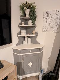 angoliera due pezzi staccati ridipinta con colori specifici per mobili colori bianco e grigio cemento con applicazioni in legno. preferibile ritiro sul posto