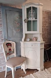 vetrinetta angolare shabby chic bianco avorio si divide in due parti per trasporto