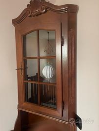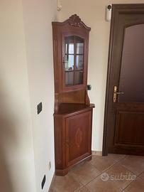 Angoliera con vano chiuso con sportello parte bassa e vetrina su parte alta