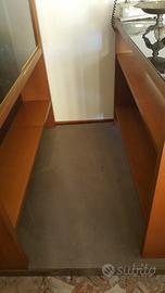 Angolo bar in legno noce chiaro, la pedana è rivestita in moquette, composto da 2 sgabelli. Stile vintage. Le spese di eventuale spedizione non sono comprese nel prezzo