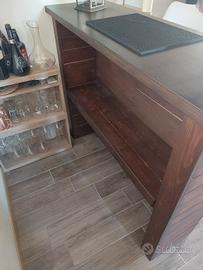 Vendo bancone bar fatto a mano in legno comprensivo di 2 sgabelli. Dimensioni bancone 135x43 altezza 112. Per altre info scrivetemi pure