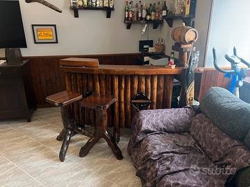 DESCRIZIONE Angolo Bar misure L 170(+allungabile di 40cm) H 104 3 Sgabelli seduta 33x33 H 71 Panca L 116 cm x H 34 3 Mensole L 76cm spesse piu o meno 19 cm no spedizione