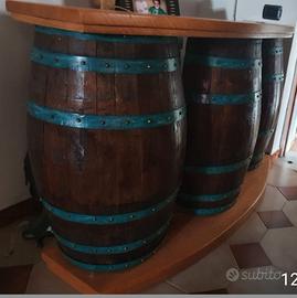 Angolo bar con botti in legno anni 60/70, lunghezza 145cm , altezza 90 cm, profondità d'appoggio 30 cm