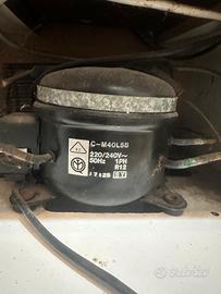 Il set è composto dal bancone con piano nero lucido semicircolare, una struttura posteriore a ripiani, anch’essa semicircolare dedicata alle bottiglie, nella quale sono integrati quattro faretti bianchi. Nella parte posteriore del bancone è presente un frigorifero perfettamente funzionante, con motore originale. Lateralmente due vani porta oggetti, chiusi da antine a battente in vetro satinato. Brand presente a lato del bancone. Le condizioni sono buone, é presente qualche lieve imperfezione presente come si evince dalle foto .