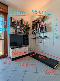 - libreria a muro pannello legno bianco laccato misure 120x78cm con 3 mensole in vetro 120x22cm e pannello 140x98cm con 4 mensole in vetro140x22cm. L'altezza delle mensole è regolabile