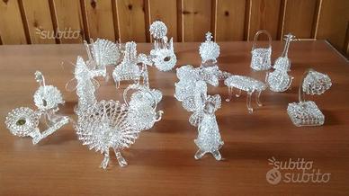Per amanti degli oggetti in vetro dispongo di personaggi quali: lumaca, sedia a dondolo, annaffiatoio, pavone, tacchino, airone, , violino, koala, lampada, abaut jour, tavolino, canguro, trespolo con uccellino