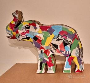 Elefanti screziati, sagome di cartoni e collage, altezza 42 cm larghezza 43