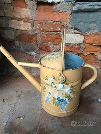 Splendito annaffiatoio antico in metallo dipinto.