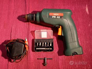 3)Foto4: Trapano avvitatore-svitatore della ditta italiana Valex perfettamente funzionante con punte e alimentatore per ricaricare le batterie interne. 35 euro.