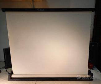 2)Foto3: Schermo avvolgibile tedesco per proiezione anni 50 marca Blitz. Struttura in legno appoggiabile su qualsiasi piano. Chiusura a pressione. Schermo utile: 1 metro x 80 cm. 80 euro.