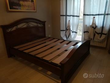 Letto matrimoniale in colore legno - elegante e robusto. Vendo letto matrimoniale del colore legno, colore noce scuro, dal design classico ed elegante, ideale per arredare con stile una camera da letto tradizionale o raffinata. Il letto ĆØ composto da: ⢠Testiera alta finemente lavorata con inserti decorativi in ferro battuto ⢠Pediera coordinata, solida e ben rifinita ⢠Struttura molto robusta, stabile e durevole ⢠Rete a doghe in legno inclusa, in ottime condizioni GiĆ smontato!!! Vendo solo per cambio arredamento. šMisure standard matrimoniali š¹Il letto ĆØ usato ma tenuto molto bene, senza rotture o difetti strutturali š¹Normali segni di utilizzo compatibili con l'etĆ š¹Smontabile, facile da trasportare šRitiro a carico dell'acquirente š© Per informazioni, contattami senza impegno!