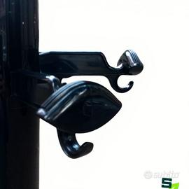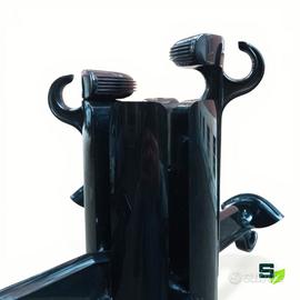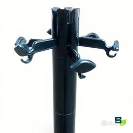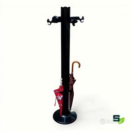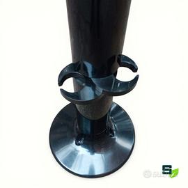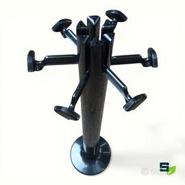 Appendiabiti in plastica nera perfettamente funzionante. Trasformabile in base all'esigenza, si presenta chiuso come un totem cilindrico che si apre rivelando 6 ganci da aprire tutti assieme o uno alla volta. All'occorrenza 2 portaombrelli estraibili e rotanti e fori alla base. Ottime condizioni generali con leggeri segni dovuti al tempo e all'utilizzo. Designer Giancarlo Piretti per Anonima Castelli 1972. Ritiro gratuito in negozio oppure spedizione corriere