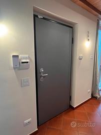 Dimensioni anta 95x212, colore grigio, decorazione esterna, due set di chiavi e chiave di sicurezza per modifica cilindro in caso di smarrimento.
