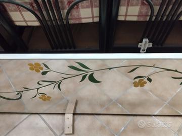 due ante con specchio con immagini floreale completo di cerniere e telaio. Il tutto costruito da mastro artigiano. misure delle ante: altezza cm 264; larghezza cm 50; mentre il telaio misura: altezza cm 270; larghezza cm 102. no spedizione visto e piaciuto.