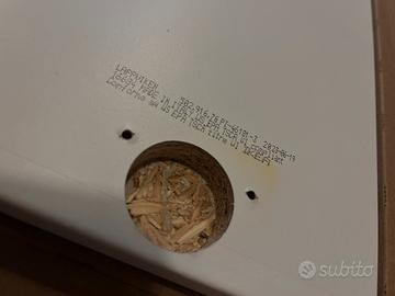 Una delle due ante ha uno dei due fori dove va la cerniera con i fori del legno un po in fuori (foto) ma basta metterci la vite un pelo piu grande e fa presa senza problemi, o mettere in torno alla vite un po di nastro.