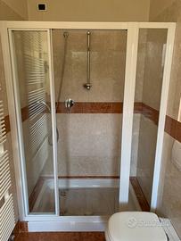 Porta doccia suddivisa in 4 parti , scorrevoli consentendo apertura o centrale o laterale Dim. H=185 cm, L=138 cm
