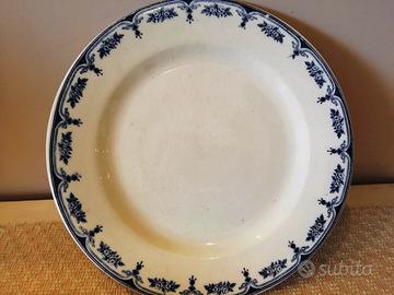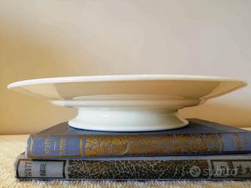 Deliziosa e antica alzata per i dolci con piede di appoggio basso, decorata sulla tesa con romantiche ghirlande di fiorellini blu inseriti in una centina, su fondo chiaro, color avorio. Presenta un diametro di circa cm 24,5 e un'altezza di circa cm 4,5. In ottime condizioni, senza rotture, sbeccature o filature, ma con alcune trascurabili craquelure, testimonianze del tempo trascorso, che non ne inficiano la bellezza e la funzionalità.