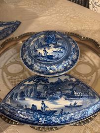 Antica Antipastiera inglese ceramica blu +Vassoio