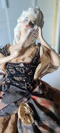 BAMBOLA COPRI TEIERA d'epoca , TEA COZY - BISQUE DOLL. Porcellana francese. Questo tipo di bambola aveva la funzione di coprire la teiera sotto la gonna della bambola, sorretta e mantenuta ampia da un'apposita leggerissima struttura metallica apribile alla base.