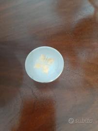 Antica bottiglia con decori a rilievo. Integra con tappo originale. Bordi oro. Misure 18x9 ( diametro parte larga) cm.