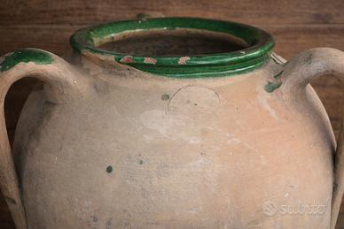 Splendida antica capasa salentina in terracotta, proveniente da Nardò (LE), tradizionale recipiente utilizzato per la conservazione dell’olio d’oliva.