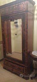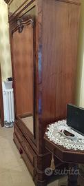 Antica cappuccina adattata a armadio single noce e radica di noce con grande specchio centrale molato ai lati e con intarsio di foglia superiore, cassetto classico inferiore capiente. A acquirente consegno ricevuta venditore attestante il periodo metà ottocento. A acquirente consegno vari piani di appoggio in legno adatti per " trasformare" l"armadio" in libreria. Doppia funzione quindi , mobile perfetto in ingressi. Non spedisco qui ogni accordo di consegna sul posto, no cellulare se interessati richiedere qui misure precise. Prezzo euro 350. Altro mobilio classico, sedie comprese, disponibile per trasloco( credenzina,tavolino,credenza,cassettone, scrittoio ).