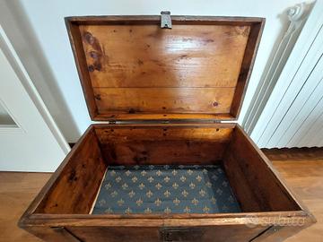 Antica Cassa centenaria appena restaurata da restauratore professionista. pulizia e trattatamento con prodotti di alta qualita'. Verniciatura ad acqua e lucidatura gomma lacca. Ogni pezzo e' originale e il restauro ha preservato la sua originalita'. Prezzo trattabile. Ritiro in loco.