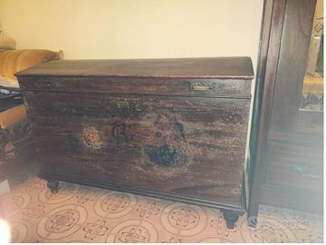 Antico baule / cassapanca vintage In legno Dei primi del '900 Misure: 114 / 59 / 79