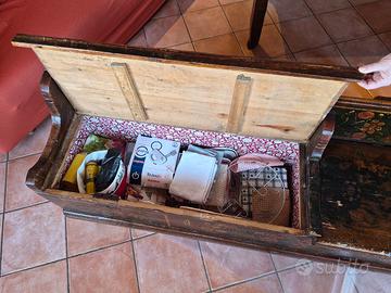 Lunghezza 200 cm , profondità 42 altezza schienale 70,apribile e capiente molto solida e in buonissime condizioni. Adatta a sedersi per pranzare o portate ideale per casa di montagna,o taverna ritiro in loco.